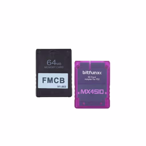 Bitfunx MX4SIO x FMCB Bundle für Sony Playstation 2 Konsolen; war es bisher den "Phat"-Varianten vorbehalten, auf Inhalte von Festplatten und anderen Datenträgern zuzugreifen, ist mit dem MX4SIO-Adapter ähnliches jetzt für ALLE PS2 möglich.