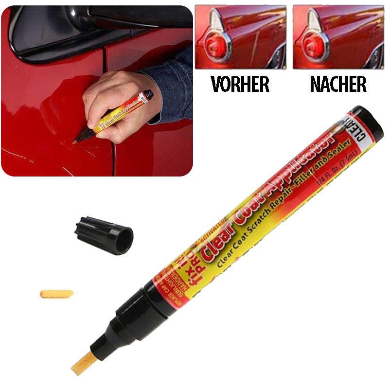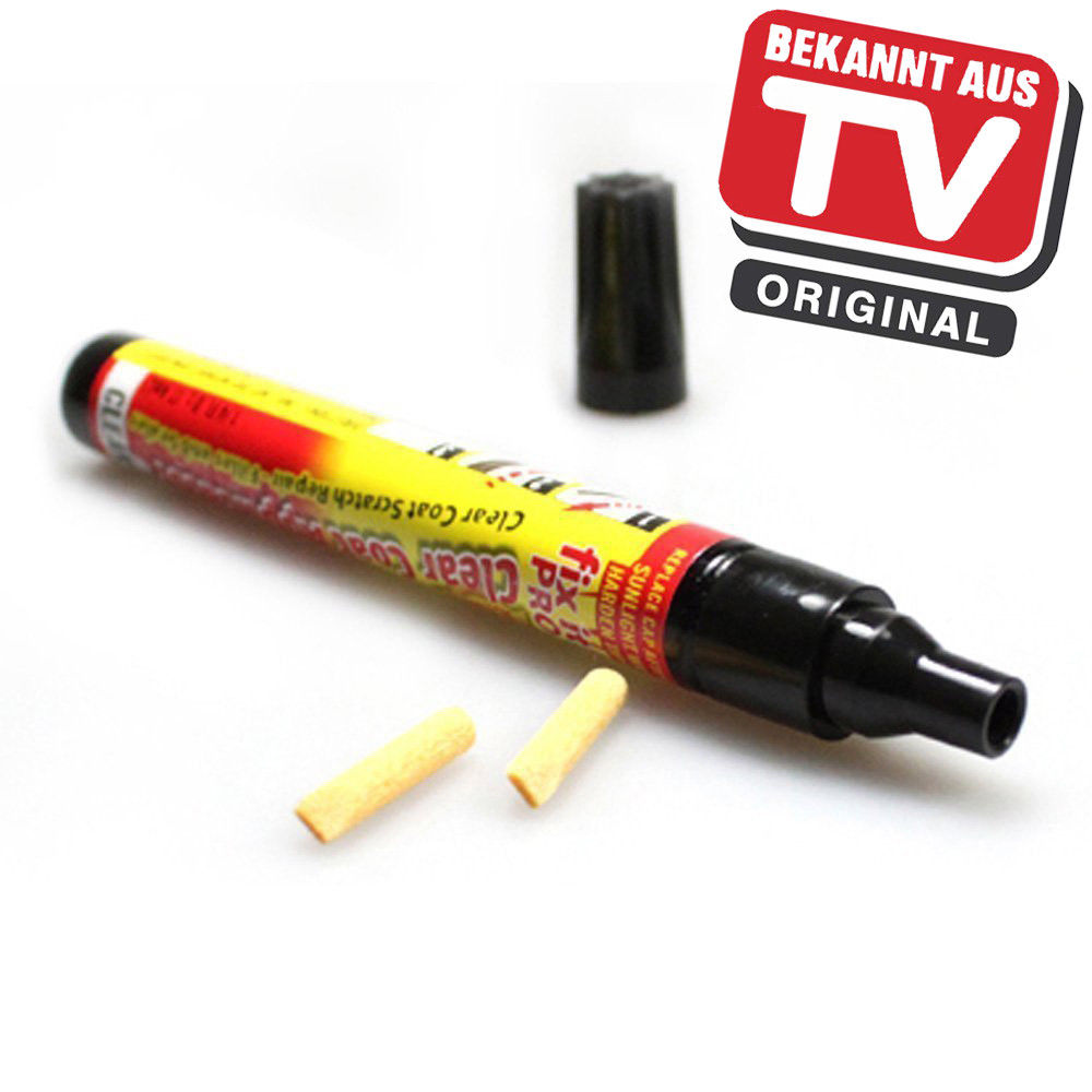 Mit dem aus der TV-Werbung bekannten "FIX IT PRO"-Lackreparaturstift ist es jetzt auch für unerfahrene Laien möglich, feine Kratzer in der Klarlackschicht eines Fahrzeugs selbst und ohne teure Fachwerkstatt zu beseitigen. Einfach auf die gereinigte Stelle dünn auftragen, einige Stunden im Sonnenlicht aushärten lassen und ggf. vorhandene Rückstände auspolieren – fertig!