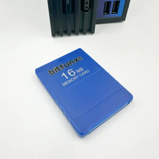 Qualitativ hochwertige Speicherkarte für die PlayStation 2, vorinstalliert mit FreeMCBoot (v1.966) des Herstellers Bitfunx.