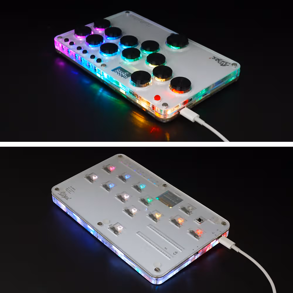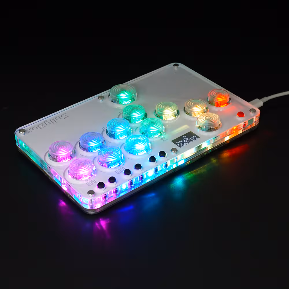 Mini-Flatbox Controller, direkt einsatzbereit. Basierend auf dem RP2040 Mikroprozessor ist dieses Arcade-Gamebad an (fast) jedem Endgerät einsetzbar.