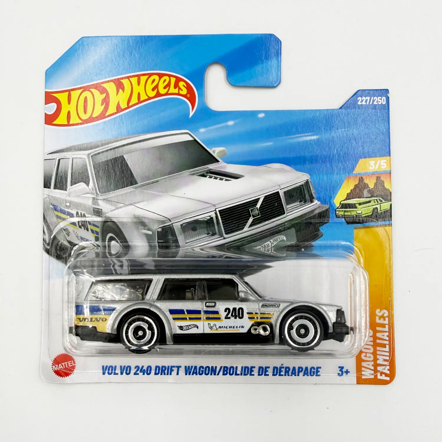 Der Volvo 240 gilt als unverwüstlicher Klassiker der 80er Jahre – solide, kantig und ein Symbol skandinavischer Ingenieurskunst. In der Hot Wheels „Drift Wagon“-Variante zeigt sich der Familienkombi jedoch von einer völlig neuen Seite: tiefergelegt, verbreitert und mit Motorsport-Details ausgestattet wird der einst brave Volvo zum echten Drift-Monster.