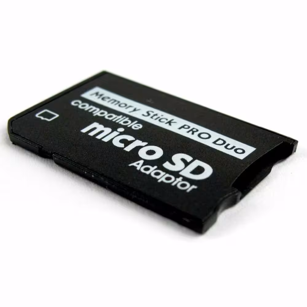 Leider ist es so, dass MS Pro Duo-Speicherkarten nur sehr teuer und immer schwerer verfügbar sind. Warum nicht also einfach einen Adapter und günstige MicroSD-Karten nutzen?